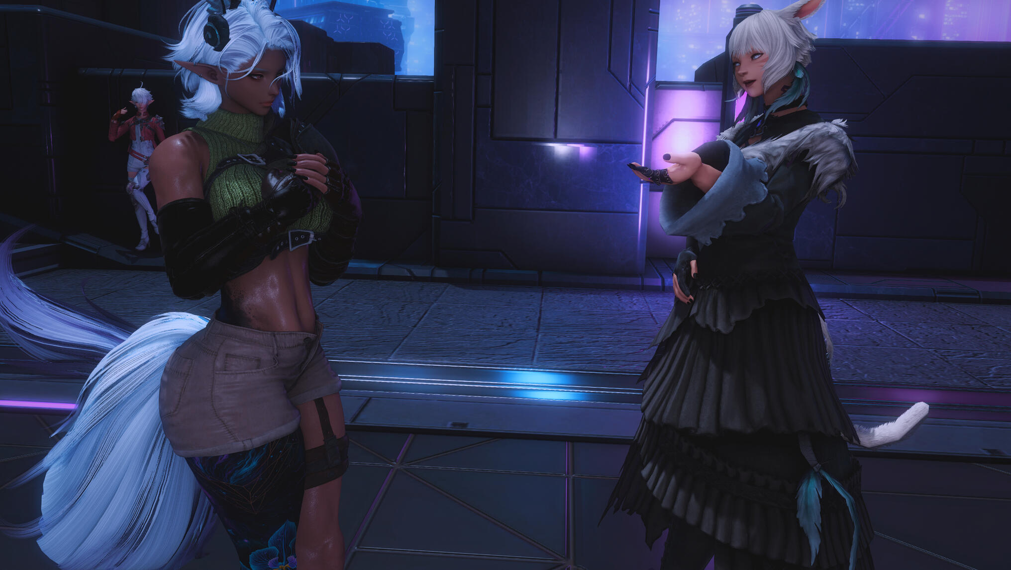 Months have passed since the battle with Sphene, and Y’shtola has scarcely left Aldra’s side as the dragon princess recovers. Time and again, she urges Aldra to let her be the shield that keeps her safe, yet Aldra only smiles, offering gentle reassurances that all is well, never sensing the intent hidden beneath Y’shtola’s words. Though a flicker of annoyance stirs at her refusals, Y’shtola veils it easily, content for now in the closeness she so fiercely covets. For behind her calm exterior lies an unshakable truth: she will not bend, nor will she risk losing Aldra. Whatever it takes, she will keep her.The next day, Aldra set out with Alisaie while Y’shtola remained behind, veiling herself in the guise of research. To the others, her efforts seemed noble, an inquiry into the secrets of travel between shards. But in truth, her focus had narrowed to a single point: Aldra. To protect her, to claim her, to shape her fate so completely that she could never be lost again.In Solution 9, Aldra paused at a salon, and later Y’shtola would see the change: her long hair shorn to a shorter style, the look sharpening her presence, giving her an edge that made Y’shtola’s breath catch. Renewal. Transformation. Each small change etched itself into Y’shtola’s mind, feeding the quiet fire that had long since taken root.Alisaie, eager to help her friend move forward, offered a new wardrobe to replace the garments ruined in battle. A sleeveless green crop top, silver shorts, dark gauntlets trimmed with crimson, and blackened combat boots. Strong. Beautiful. Entirely unforgettable. Y’shtola’s gaze lingered on every detail, not with idle admiration, but with a devotion that bordered on hunger. She masked it well, of course, but within her heart the truth remained constant: Aldra was hers. She had always been hers. And one day, Aldra would understand thatIn the stillness of their rest, Aldra’s quiet voice cut through the air like a blade of uncertainty. ‘What is love?’ The question, so guileless and earnest, struck Alisaie with surprise. For all the battles Aldra had weathered, she was still unversed in the subtler languages of the heart. Love was one of those mysteries, distant and unnamed within her.Alisaie faltered only a moment before a smile softened her face. To her, the answer seemed simple. She had seen how Y’shtola’s gaze lingered upon Aldra, how her voice warmed in ways it did for no one else. Perhaps this was the chance for truth to emerge. ‘Ask Y’shtola,’ she urged gently, her tone bright with certainty. ‘She’ll know what love means.’Alisaie believed she was guiding two hearts toward one another, playing the kindly matchmaker. Yet beneath her words lay the seed of something far more perilous. For Aldra sought only understanding, but Y’shtola’s heart was already ensnared, her love sharpened into fixation, her tenderness shadowed by resolve. Alisaie could not know it, but in that moment she had unwittingly set Aldra upon a path toward an answer that might embrace her… or consume her entirely.